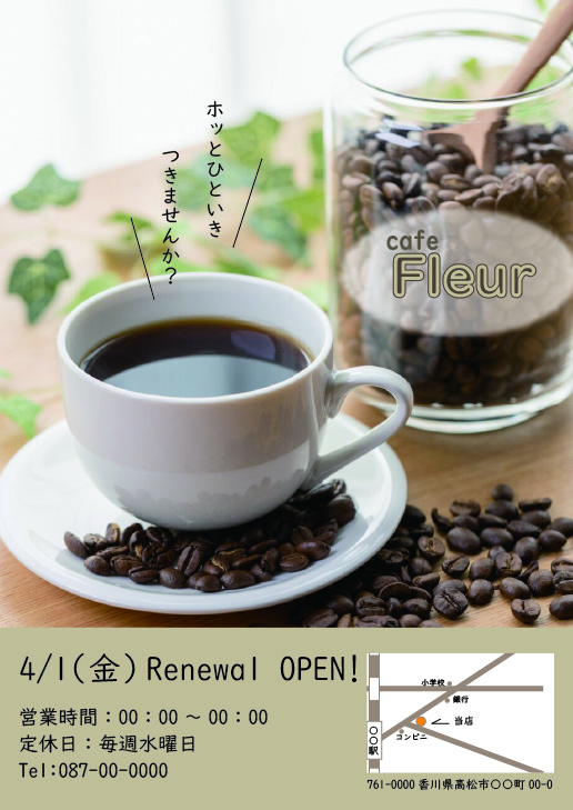 架空のカフェのチラシを作りました。